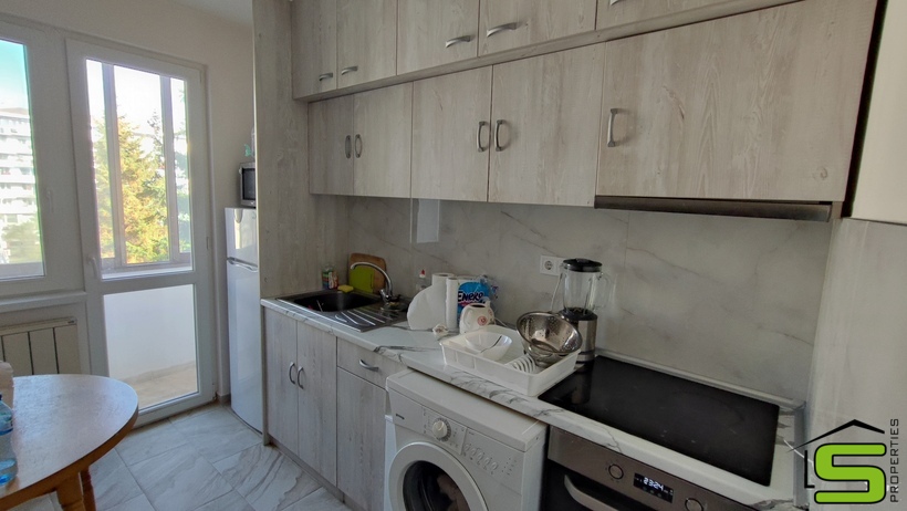 Оферта 557 Представяме на вашето внимание обзаведен, двустаен апартамент. Отдава се дългосрочно. Състои се от дневна, спалня, кухня(самостоятелна), баня с тоалетна, две тераси. Обзавеждането е както следва: дневна- ъглов диван, гардероб, TV, фотьойл; спалня- легло тип спалня, гардеробни шкафове, фотьойл; баня- напълно оборудвана; кухня- котлони+абсорбатор, фурна, хладилник, пералня, микровълнова. Всички уреди и обзавеждането (с изкл. гардероб спалня) са нови. Апартаментът е след основен ремонт. Отоплението е с централен ТЕЦ. Огледи по всяко време с един ден предварителна уговорка. Агенция “S Properties International” разполага с ключ и с изключителни права за офертата. Свободен от 01. 12. 2025г.